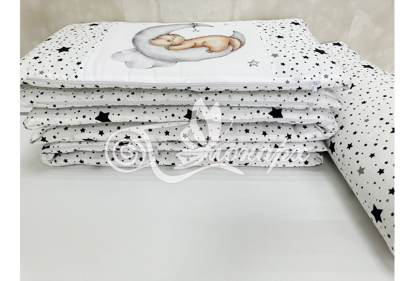 Бортики СО СЪЕМНЫМИ ЧЕХЛАМИ в кроватку: защитят Вашего малыша от ушибов, сквозняков, солнечных лучей и не дадут малышу запутаться в прутьях кроватки.