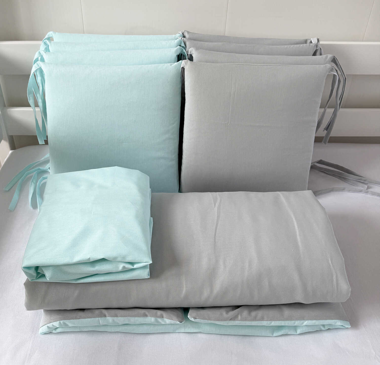 Комплекты в детскую кроватку для новорожденных с бортиками подушечками