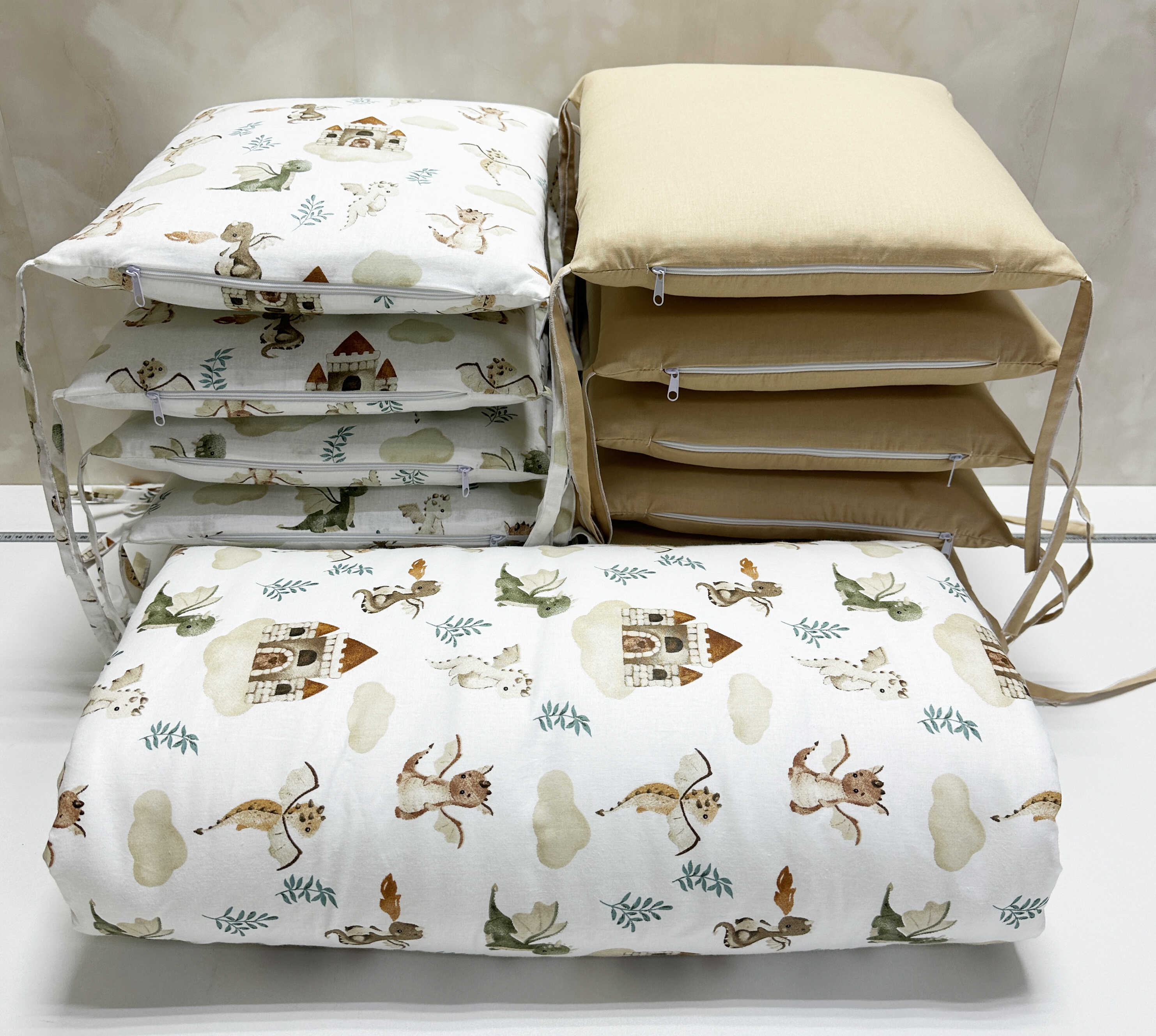 Комплекты в кроватку с бортиками, как и любые другие должны быть, в первую очередь, изготовлены из натуральных материалов. Чтобы все элементы бортика были в чехлах и могли иметь возможность для стирки и дальнейшего использования. Комплект в кроватку со съемными чехлами пользуется большей популярностью, так как это необходимо для здоровья малыша.