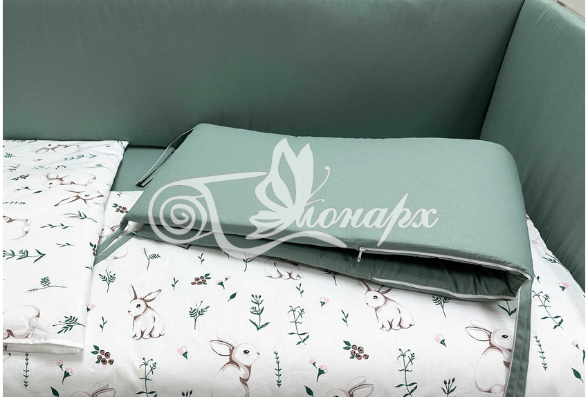 Бортики СО СЪЕМНЫМИ ЧЕХЛАМИ в кроватку: защитят Вашего малыша от ушибов, сквозняков, солнечных лучей и не дадут малышу запутаться в прутьях кроватки. - Простыня на резинке 60х120 см (подходит для стандартной кроватки)