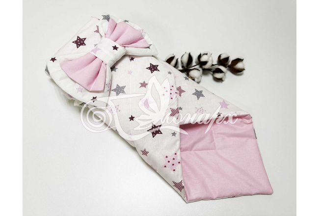 ​Конверт фиксируется поясом на резинке с бантом.