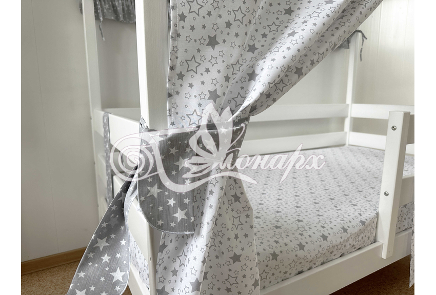 Крыша и шторы для кроватки домика ТД-16 купить в Йошкар-Оле.Теги: комплект в кроватку домик, текстиль для домика, крыша для домика