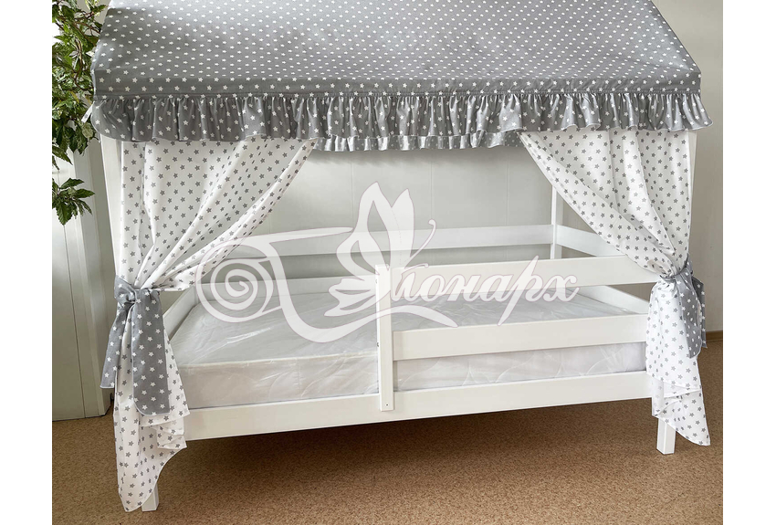 Крыша и шторы для кроватки домика ТД-5 купить в Йошкар-Оле.Теги: комплект в кроватку домик, текстиль для домика, крыша для домика