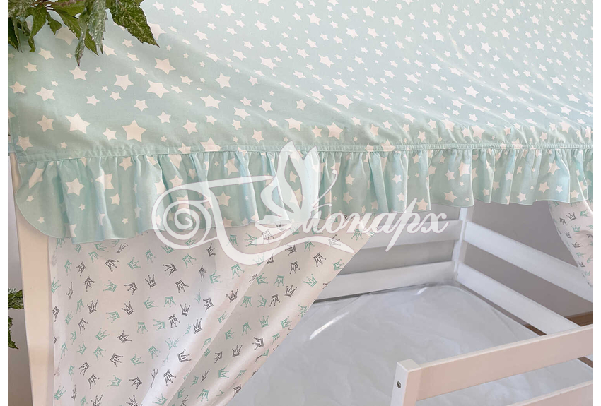 - Крыша текстильная на завязках (10 завязок) для кроватки домика: