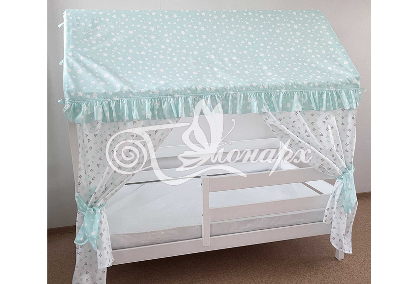 Крыша и шторы для кроватки домика ТД-8 купить в Йошкар-Оле.Теги: комплект в кроватку домик, текстиль для домика, крыша для домика