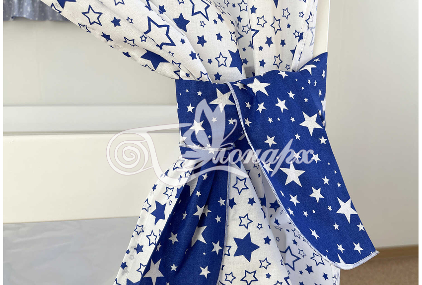 ширина - 82 см. - Занавески с завязками (по 4 завязки на каждой занавеске) на боковые стороны кроватки 2 шт.: