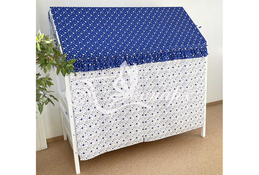Оформить Ваш домик в индивидуальном дизайне можно при помощи текстильных крыши и стен. Текстильная крыша и стены создают сказочную атмосферу для игр, являются уникальным дополнением интерьера детской комнаты, а также защищают малыша от сквозняков и пыли. Для пошива крыши и стен для кроватки-домика используются только качественные безопасные материалы.